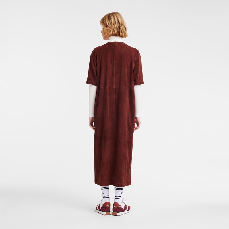 - Longchamp Kožené dlouhé šaty Vínové Kůže