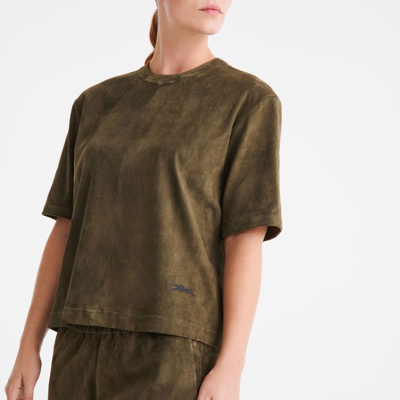 Kratki kožni top Longchamp Kaki - Koža