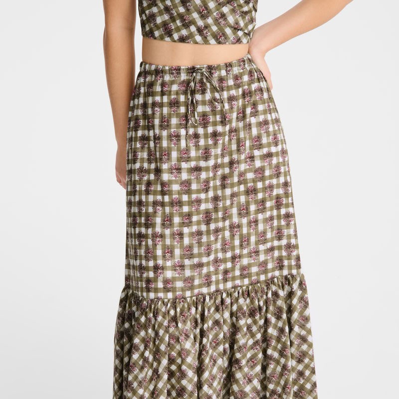 - Longchamp gonna Lunga Carciofo - stampa Vichy velo