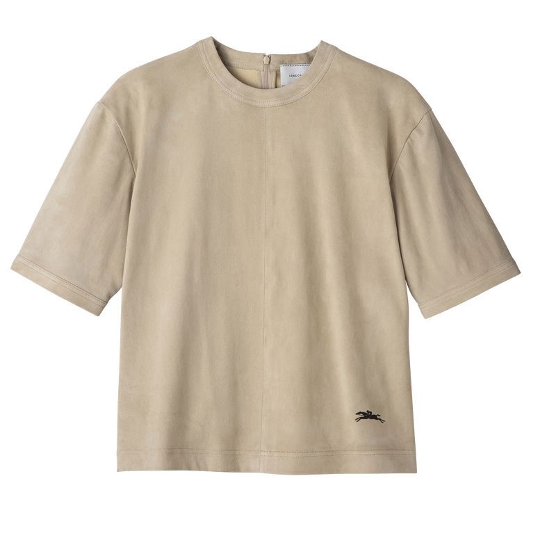 Dette semsket lammeskinn t-skjorte er trendy og kjapt legger til en uformell elegant touch til din dag-til-dag ser. Med et rett snitt og rund krage, det kan også være kledd opp for kvelden ser med noen sorte skinnbukser og hæl støvler.